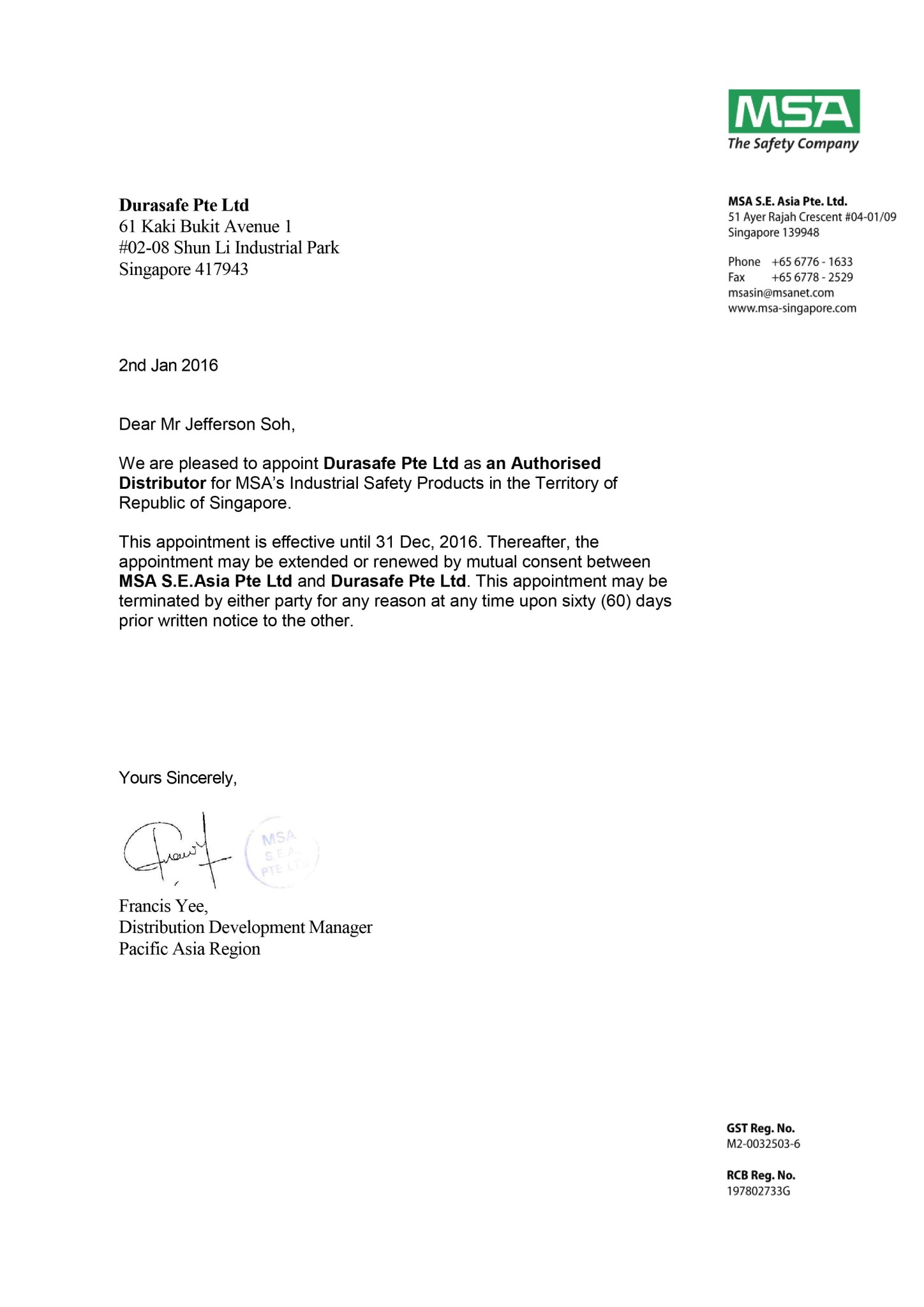 Distributor Appointment Letter - Durasafe 2016-01