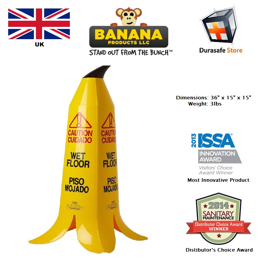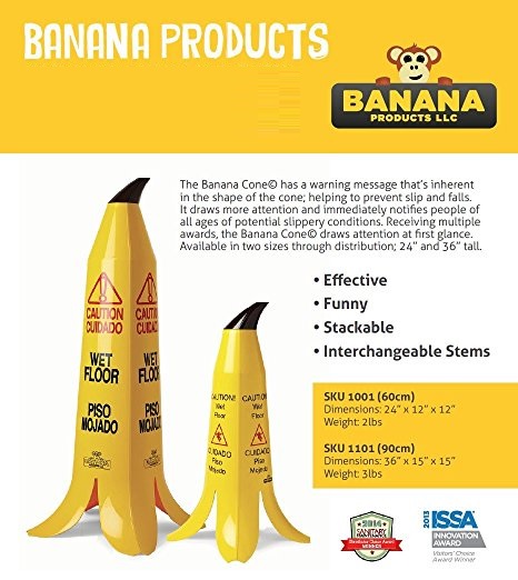 This big banana certainly won’t go unnoticed. The Big Banana Cone — a safety cone molded into the shape of a banana – with the “Don’t Slip” warning message draws more attention than traditional wet floor signs. Stackable for easy storage, 4-sided, thick, and compliant with International SafetyStandards.