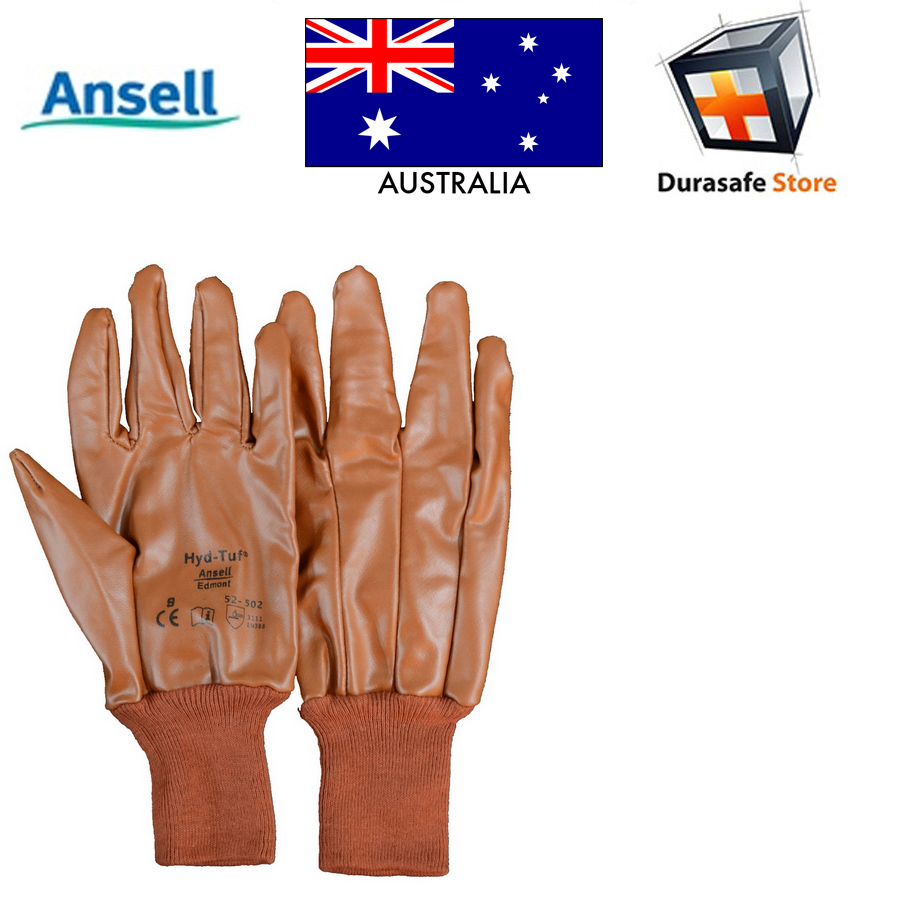 ANSELL 52-502 Hyd-Tuf Nitrile Impregnated Coating Glove Knit Wrist Brown Safety Gloves Size 10