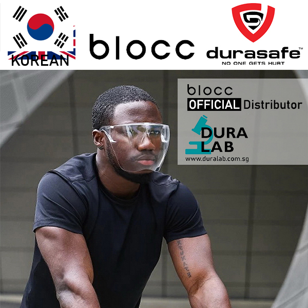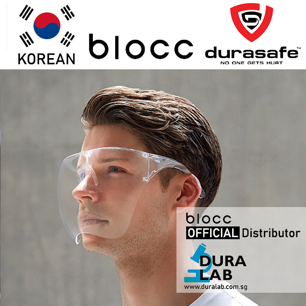 Although it is not designed for healthcare or laboratory settings, Blocc is made of polycarbonate – a durable material used for protective goggles.
