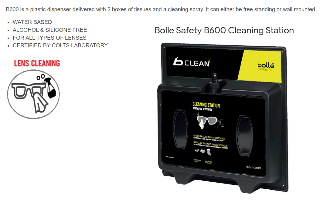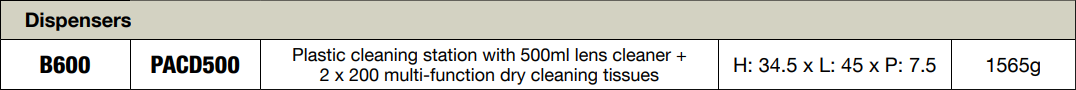 B600 is a plastic dispenser delivered with 2 boxes of tissues and a cleaning spray. It can either be free standing or wall mounted.