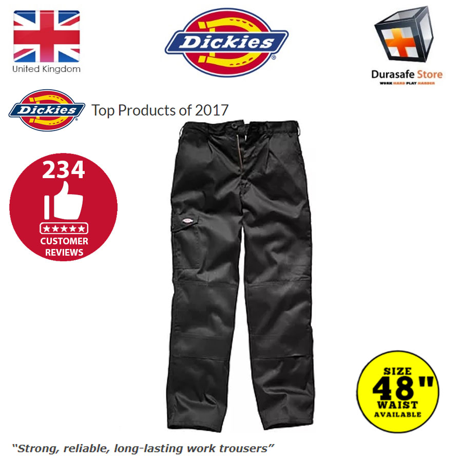 These are by far the most popular, value driven Dickies work trousers. Helping you to perform with the quality assurance you deserve, they come loaded with deep pockets and a hammer loop for carrying all your essential equipment. Triple stitched seams also ensure great durability. Full product details are in the specification below showing these to be suitable for a wide variety of trades. Don’t forget to add Dickies knee pads to your selection!