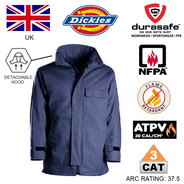 FR Modacrylic insulation quilted to FR twill lining Bi-swing, two-piece action back zips Side vents Pockets include two lower patch pockets, a chest pocket with snap closure (left side) and an interior cellphone/utility pocket (left side of chest)