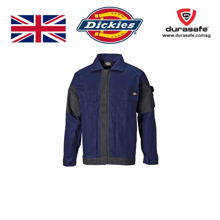 A key part of the Dickies GDT range, this two-tone work jacket teams up with the GDT Trousers for a complete solution. The jacket is extremely durable, with high quality 100% cotton reinforced with triple stitch detailing throughout, using high-quality Coates thread. The full-length YKK™ front zip is covered by a storm flap for extra protection and warmth.