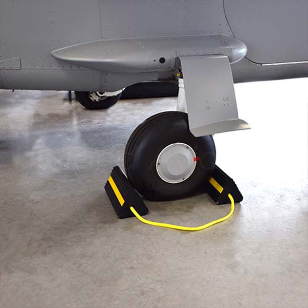 Helicopter rubber wheel chock w/ PP rope, Consists of two chock components that are connected by propylene rope