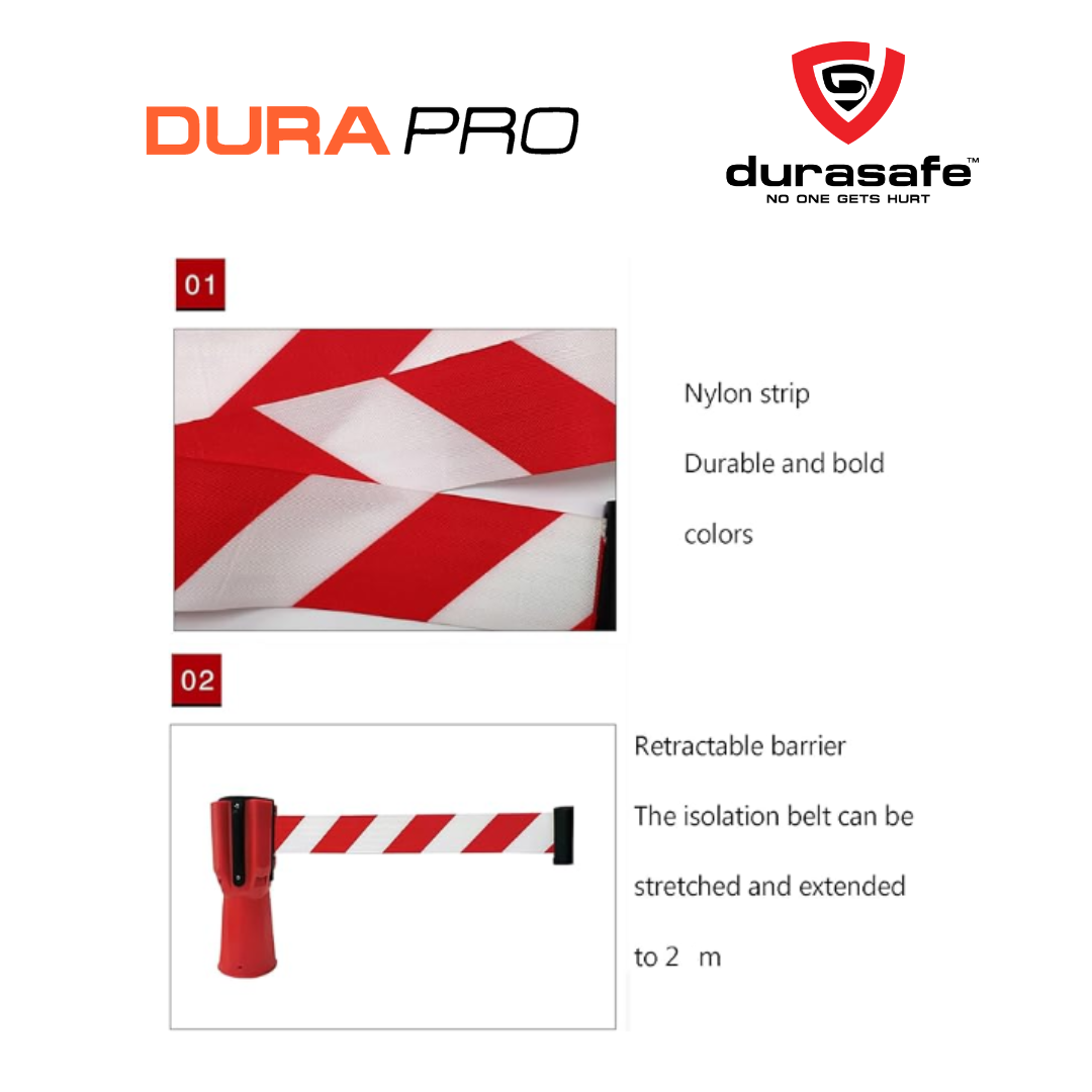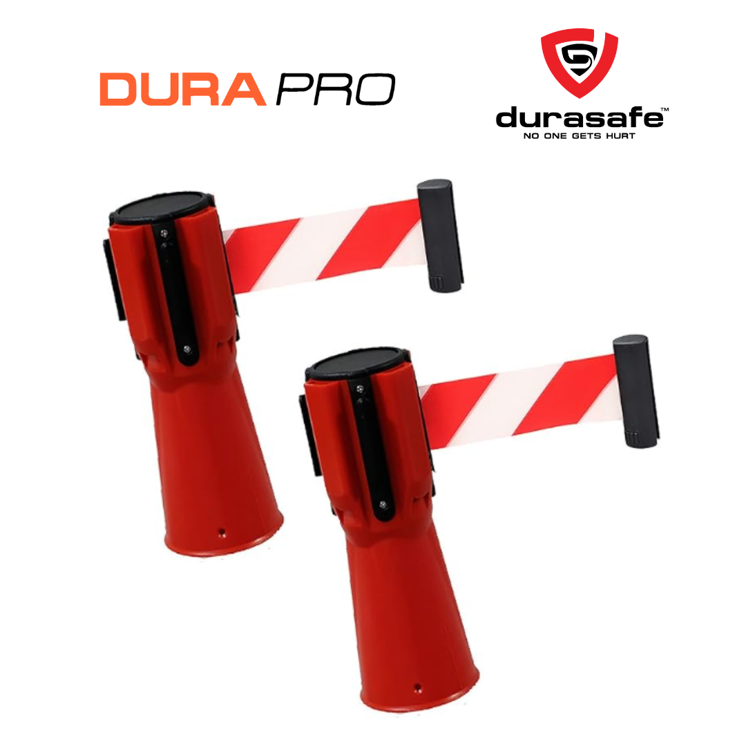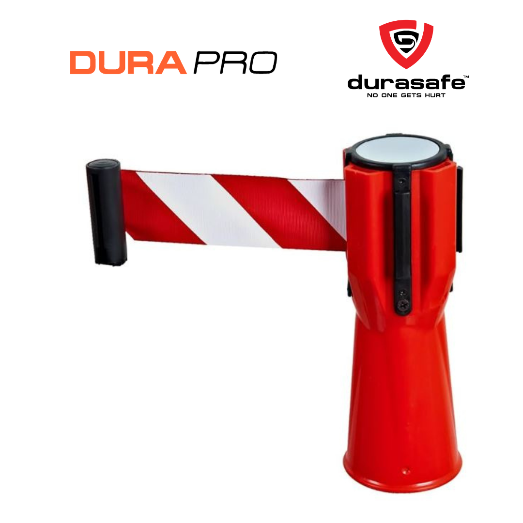 DURAPRO RoadSafe W-TCB2 Cone Mounted Retractable Barrier System, 2mtr Belt, Color Red/White