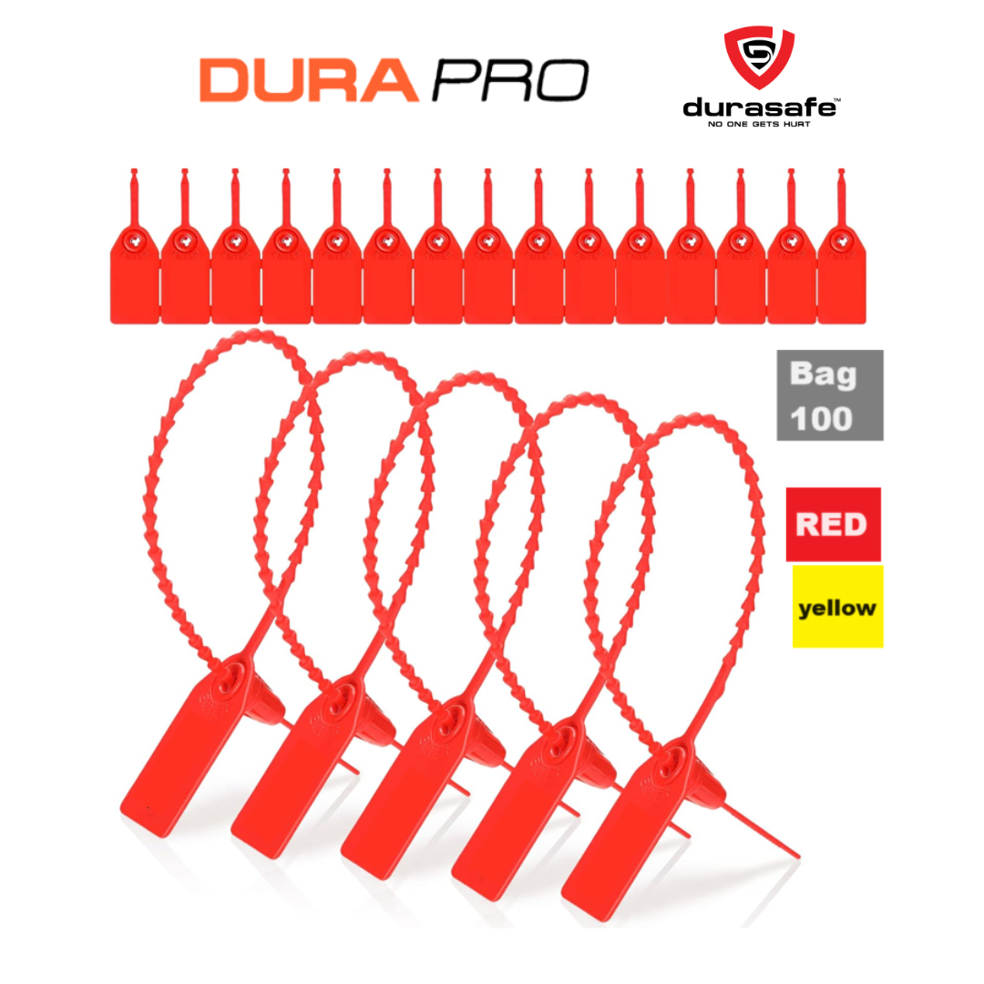 DuraPro Security Pull Tite Seals 25cm Disposable Seal *NO NUMBERS Red/Yellow (100 per bag)