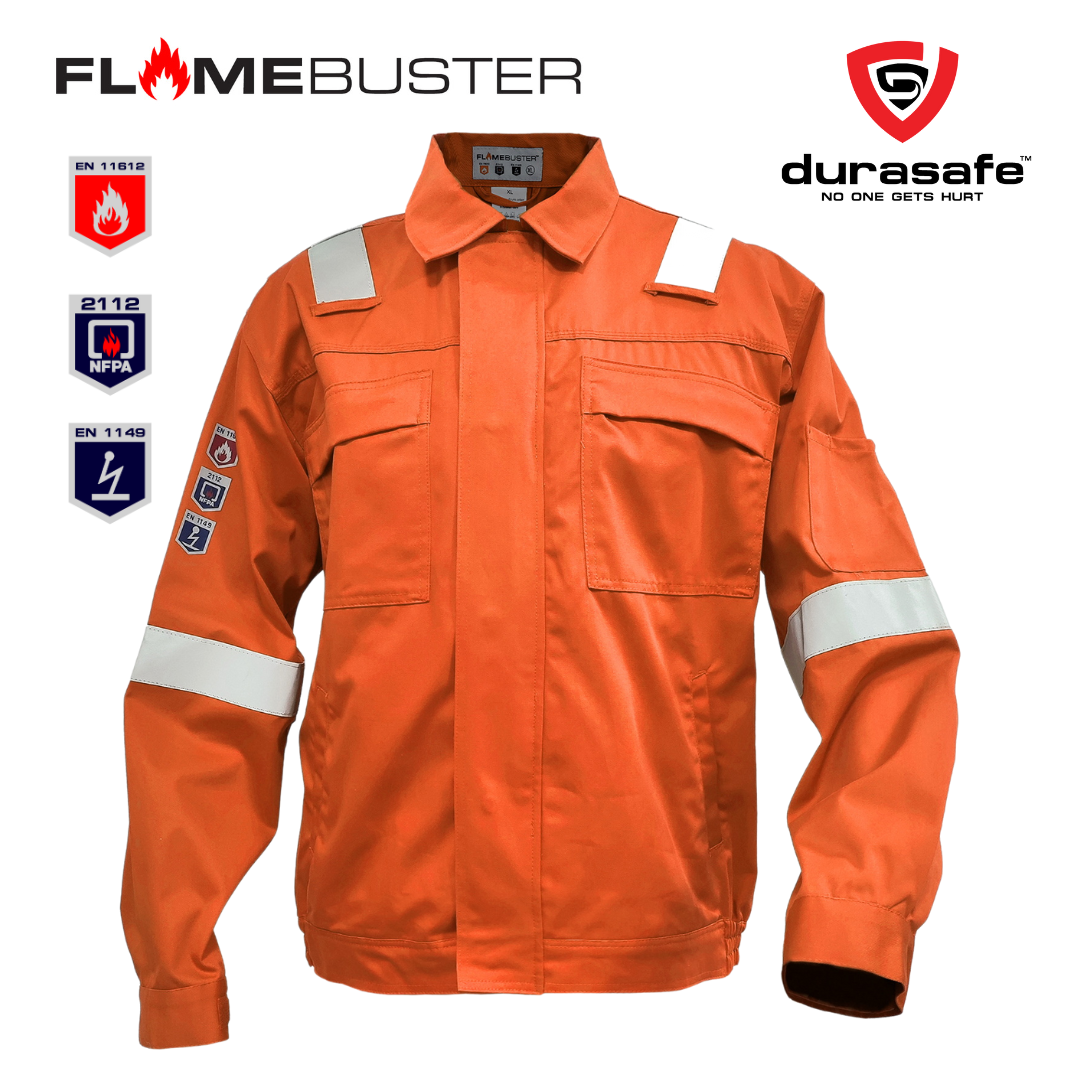 Optimized for comfort & mobility, the innovative Flamebuster FR Jacket & Trousers design makes it easier to move when working in restricting environments, while reducing chaffing at the same time. Durability has been worked into every detail of the design and construction to ensure a long service life.