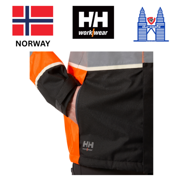 The UC-ME Winter Jacket combines lightweight fabric, functional design, and clever details for superior winter worksite performance. Articulated sleeves with seam-free shoulders and an extended back design provide comfort and mobility. Tailor the fit with vertical and horizontal hood adjustments, as well as adjustable hem and cuffs. The detachable hood is helmet-compatible for safety and versatility. Hem adjustment elastic is accessed through the pocket, eliminating a potential snagging hazard. In addition to using fabric that meets international standards for visibility, we’ve added VizLite DT® stripes, making the UC-ME a stand-out among high-visibility jackets on the market. Stay comfortable all day with a padded collar and chin protector. Both collar and hand pockets are lined with brushed polyester. Personal items stay handy with YKK® zippered pockets, a chest pocket, and an ID card loop.