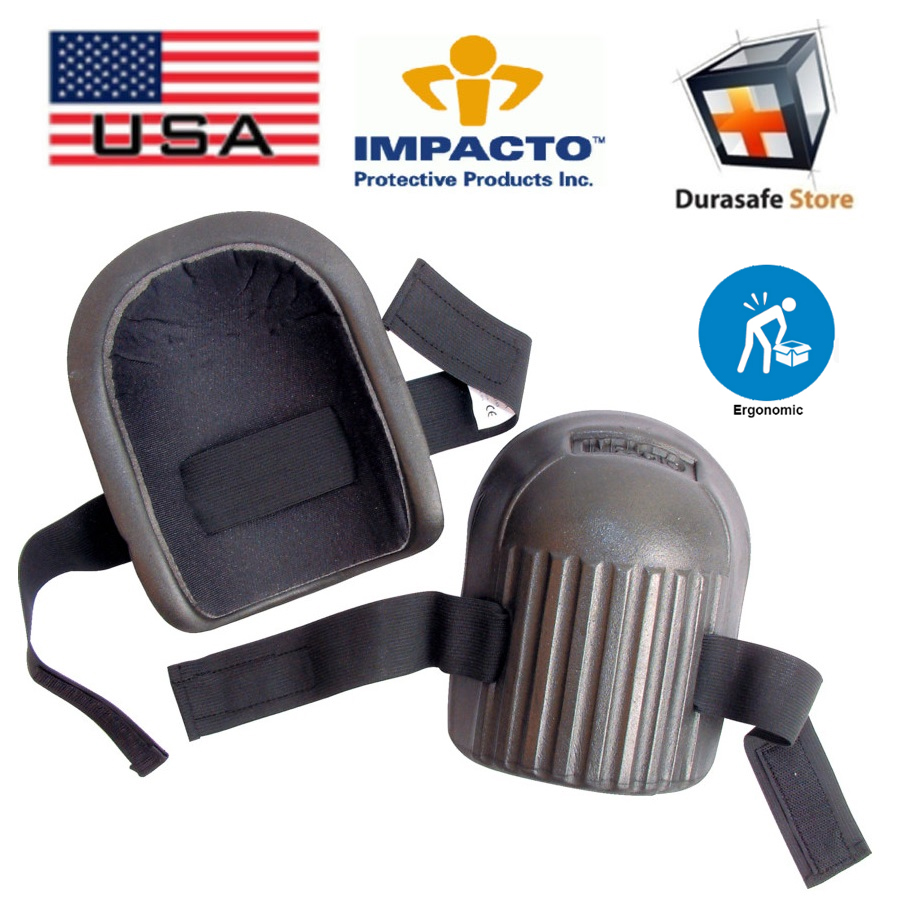 Lightweight moulded kneepad with ribbed kneeling surface.