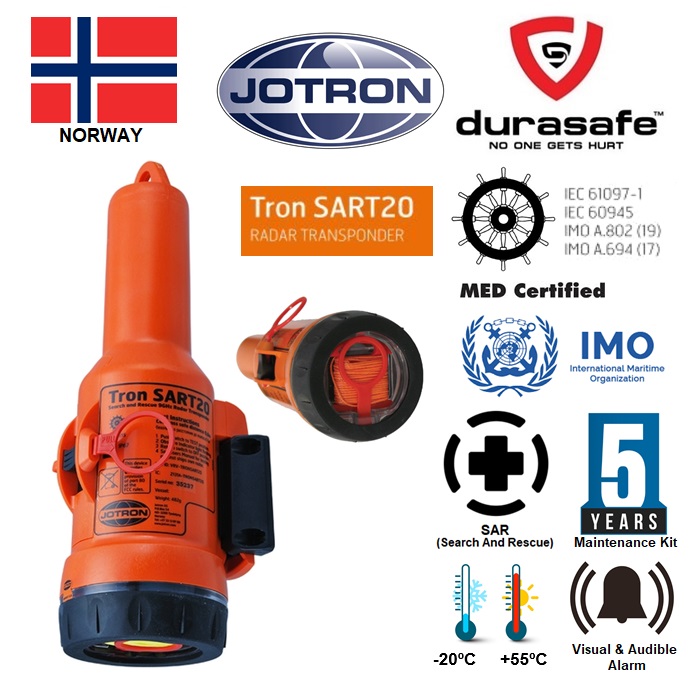 Jotron have for several years been one of the world’s leading producers of SART (search and rescue radar transponder). Jotron’s Tron SART20 is designed for use in search and rescue operations and gives the exact location of the distressed indicated on the radar X-band display of any nearby ships, SAR vessels and aircrafts.