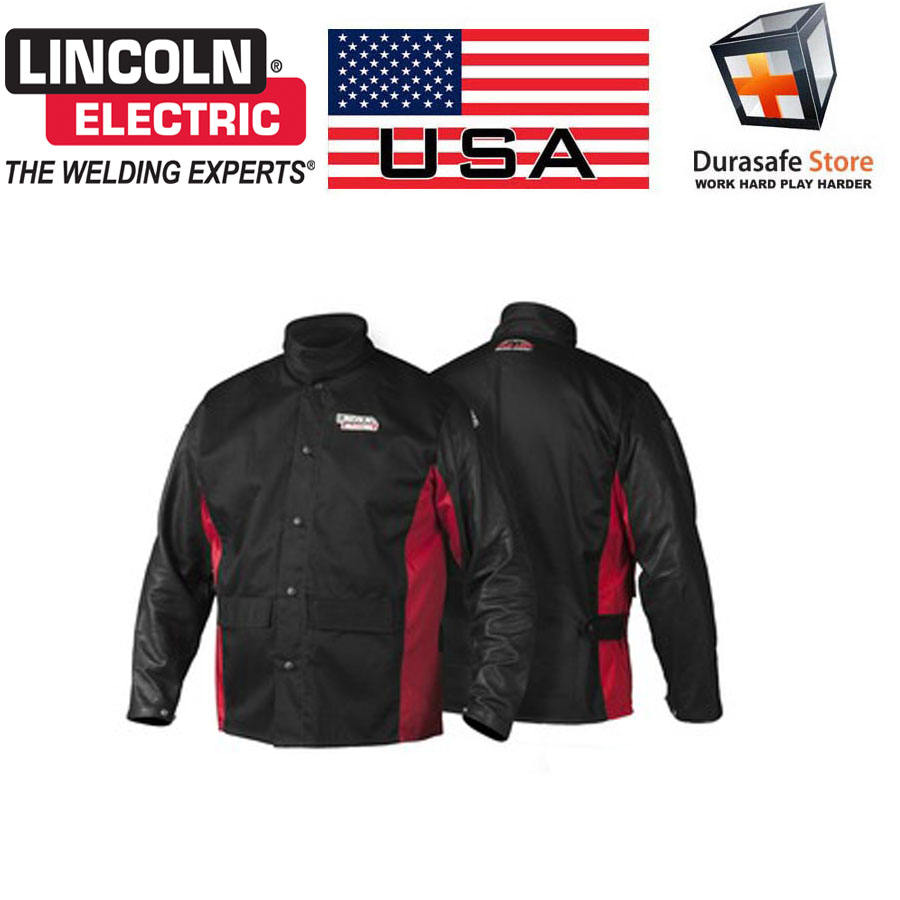• Black jacket with red shadow accents offers style while welding