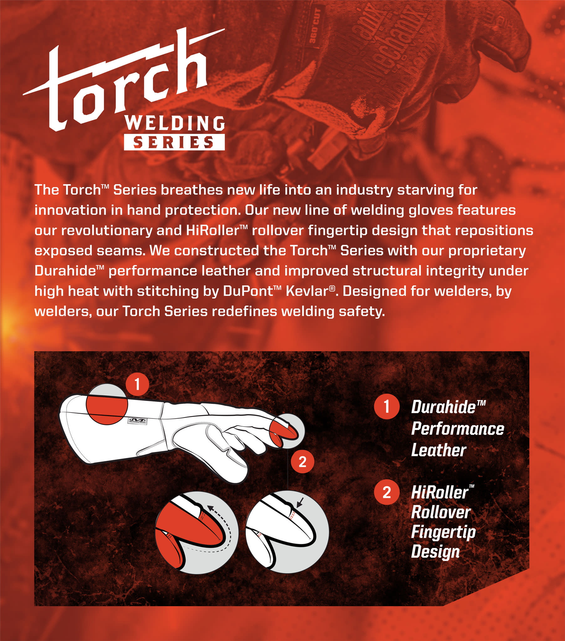 • HiRoller™ rollover fingertip design offers welders better dexterity, durability and control