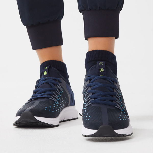 Meet the new Next-Gen Vigor, an athletic, sneaker-inspired shoe packed with thoughtful features. It’s lightweight and super comfortable to wear, ideal for long shifts spent on your feet. A transparent water- and pathogen-resistant coating on the upper, a soft, moulded midsole and SRC-rated outsole for maximum slip resistance are smart inclusions. You’ll also appreciate the hidden lace pocket and the 25 gauge hypodermic needle drop protection for extra safety when you’re hard at work. The vegan-friendly design incorporates 25% recycled yarn for sustainable style. Cast in classic navy with cobalt-blue trimmings, the Vigor looks as good as it feels.