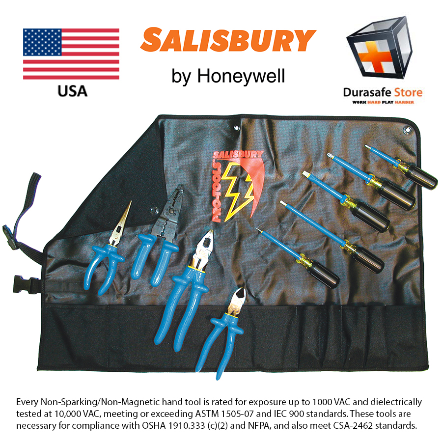Salisbury’s New Line of Non-Sparking/Non-Magnetic/Non-Corrosion Hand Tools utilize the same high impact resistant insulating material as our traditional full line of insulated hand tools. The insulating material is flame retardant and created with two-colors (blue and yellow), making inspection easier, adding to the overall safety. If the yellow under layer is showing, the tool may no longer be insulated properly and should be considered for replacement and shall be removed from service.