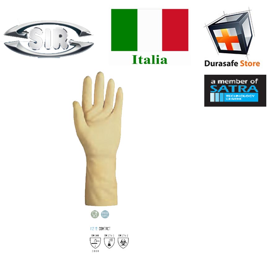 SIR 11212 Contact thinking and latex gloves material: natural latex, thickness: 0.4MM, lining: non-flocking, chlorination, length: 30.5CM, surface: rough, dexterity: 5, product design and manufacturing in line with 89/686 / EEC certification requirements, classified as PPE level III.