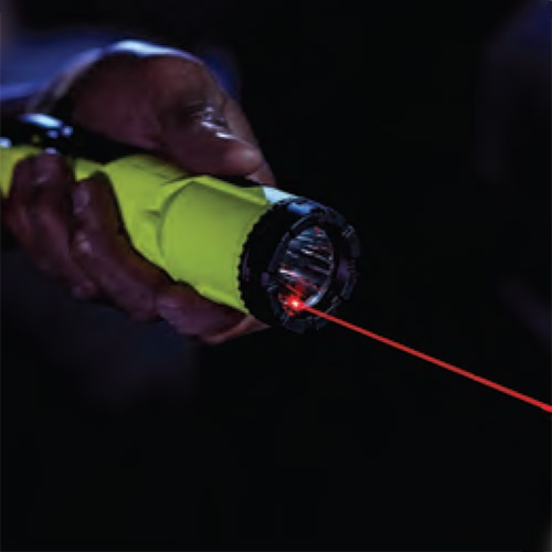 The first intrinsically safe flashlight featuring a red laser pointer. Along with a focused spot beam, you can see what’s ahead of you and illuminate your work area, as well as identify and pinpoint objects at a distance.