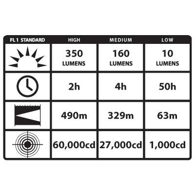 FULL-SIZE, PROFESSIONAL GRADE RECHARGEABLE LED POLYMER FLASHLIGHT Full-sized, full-feature polymer flashlight with C4® LED technology that delivers a 490 meter beam distance.