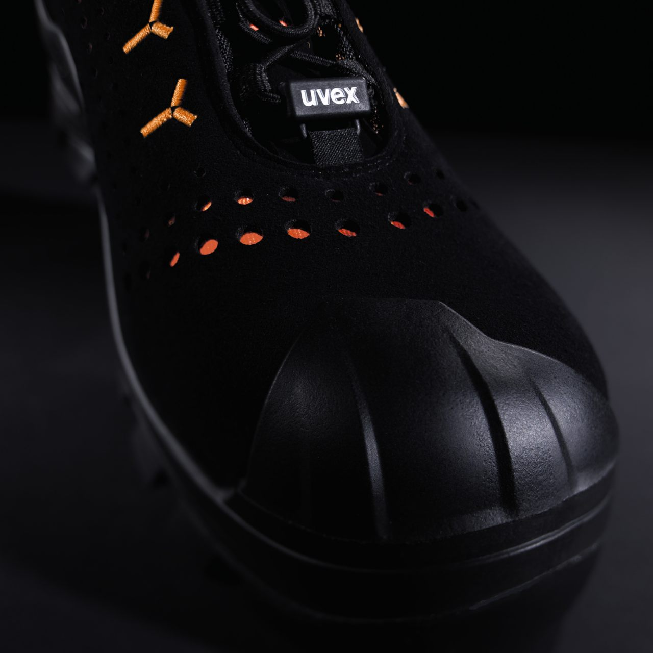 • 100 % metal-free uvex xenova® toe cap and penetration-resistant xenova® midsole – compact design, anatomical shape, good lateral stability, no thermal conductivity