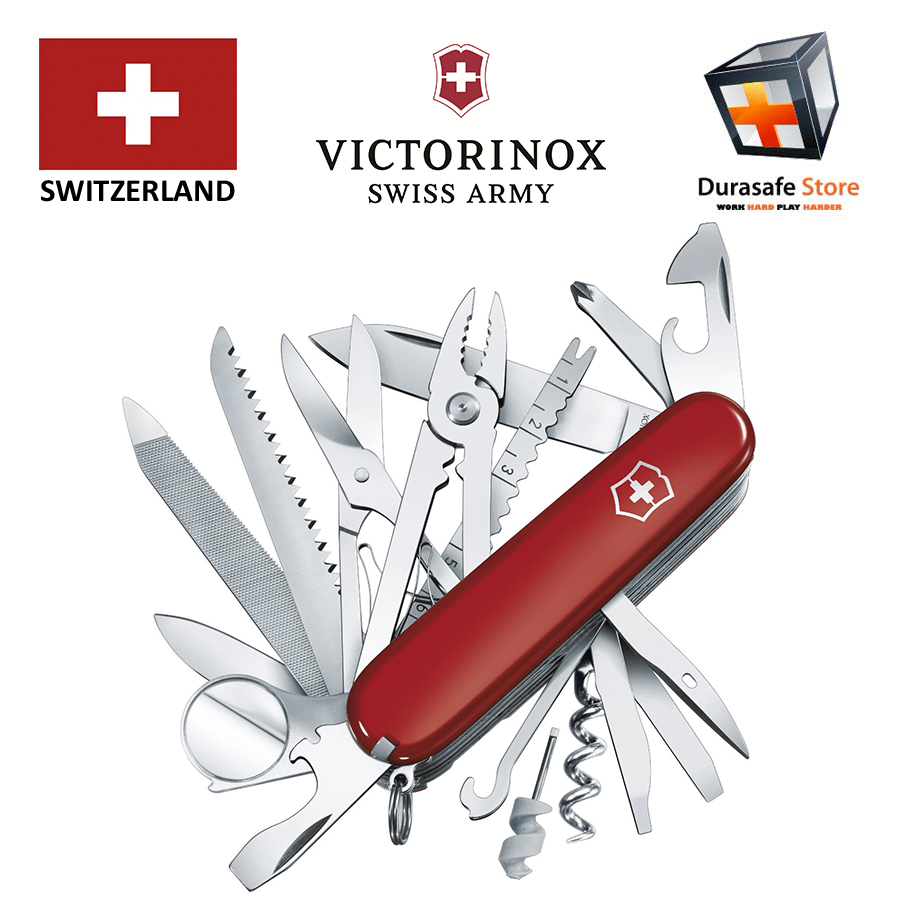 The Victorinox 53131 Tourist Knife (Red) features a large blade, small blade, corkscrew, can opener with small screwdriver (also for Phillips screws), bottler opener with large screwdriver and wire stripper and reamer with sewing eye. The red handle, 3.25″ closed, has a toothpick, tweezers and key ring. The Swiss Army knife carries Victorinox famous lifetime warranty against any defects in material and workmanship.