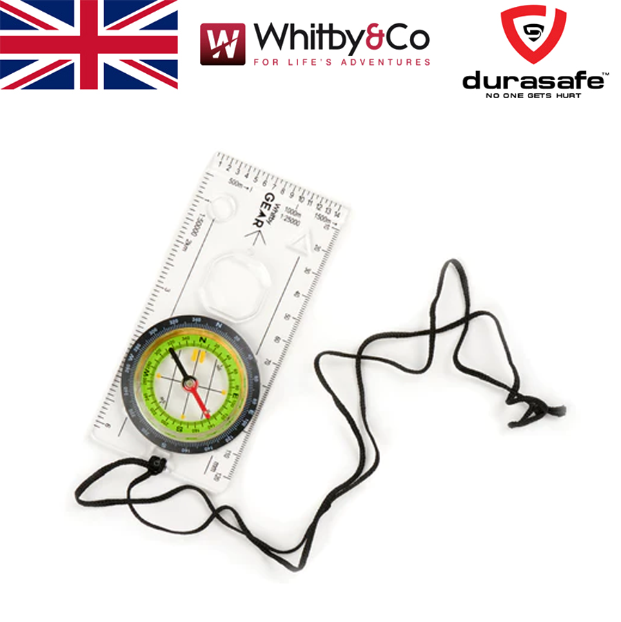 The Whitby Gear WG30 orienteering baseplate compass features: